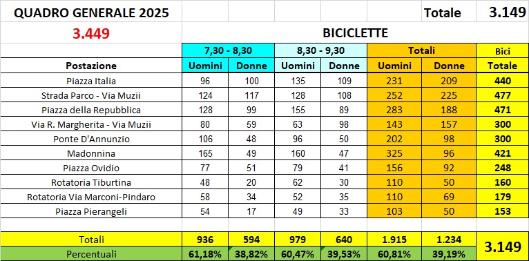«Questi numeri confermano che a Pescara la bicicletta non è una moda, ma una realtà consolidata» – sottolinea Francesco Mancini, Presidente di FIAB Pescarabici. – «Ogni anno, migliaia di cittadini scelgono la bici per recarsi a lavoro o a scuola, contribuendo a ridurre traffico e inquinamento. Il dato 2025 ci dice che, pur con meno postazioni di rilevamento, la concentrazione dei ciclisti resta altissima: segno che servono infrastrutture continue e sicure proprio dove si sviluppano i flussi principali».