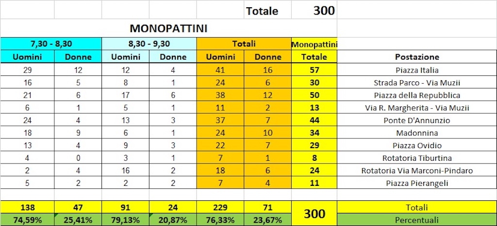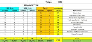 Differenze di genere e monopattini – Il conteggio ha anche messo in luce la composizione dei flussi: